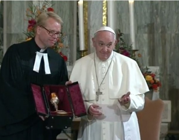(Em 15 de novembro de 2015, o Papa Francisco visitou a Igreja Luterana de Roma e no final da visita, Francisco ofereceu um cálice para os luteranos)