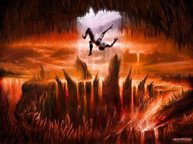 Arrastando consigo a terça parte dos anjos, Lúcifer foi precipitado no inferno, tornando-se o príncipe das trevas.
